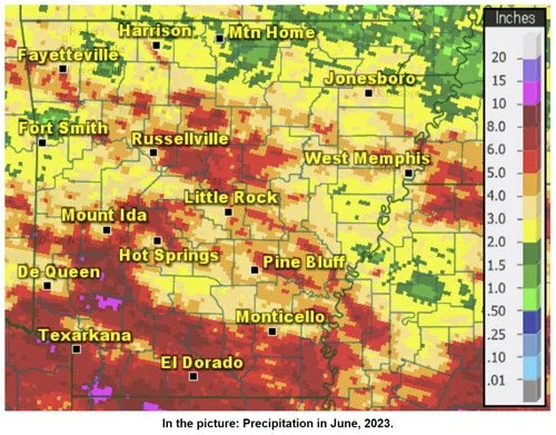 June was also “wet to very wet” across much of central and southern Arkansas.