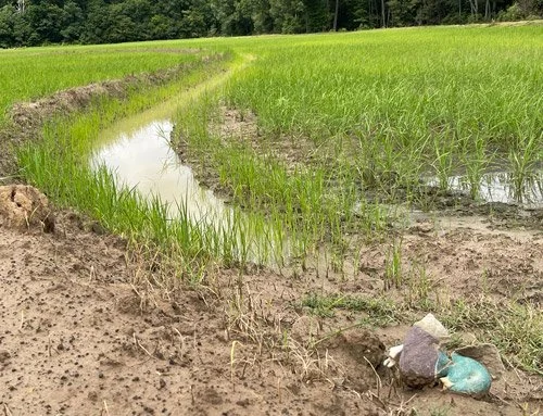 The rain has passed for now, the rice is up, mosquitos are on the prowl, and wheat has been harvested this month.