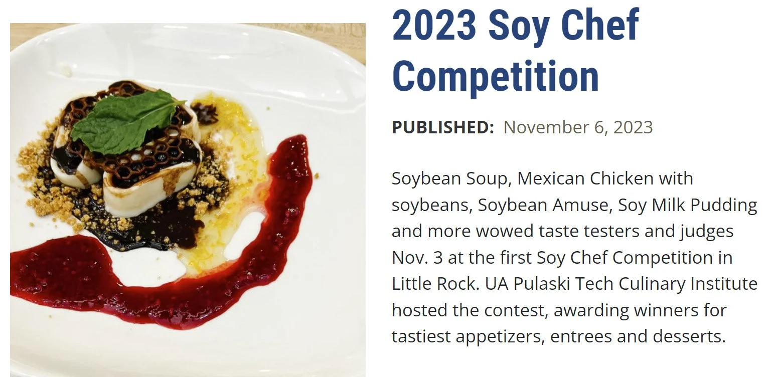 Thanks to Chad Hooten, Arkansas Farm Bureau for their coverage of the 2023 Soy Chef event.
